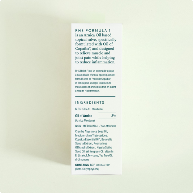 Relief F1 is made with a blend of natural, clinically studied botanicals like arnica oil, copaiba oil (rich in BCP), boswellia serrata extract, and rosemary extract—all chosen for their ability to help reduce pain, inflammation, and support recovery. Every ingredient is carefully selected to work synergistically and is generally recognized as safe (GRAS) by the FDA. Take a look at our complete ingredient list with its benefits here.