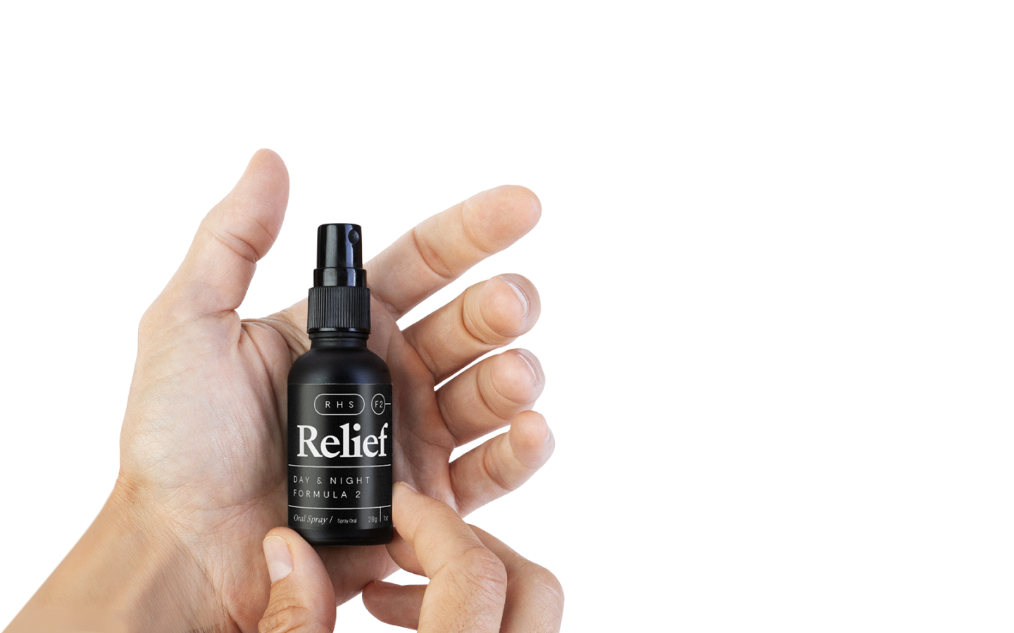 Relief F2 is designed for sublingual use. That means placing it under your tongue for better absorption. Spray 2–3 pumps under your tongue (we recommend starting small—1 or 2 sprays). Hold the liquid there for 30–60 seconds, then swallow.